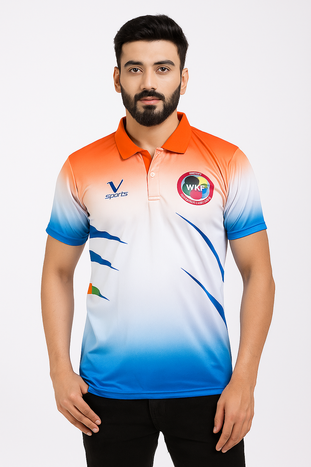 Karate India Tricolor Polo T-Shirt for Men | WKF Sportswear | National Team Jersey